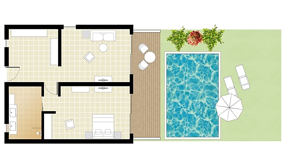 The private pool is the special feature of this suite. The spacious suite features 2 bedrooms and 1 bathroom with a bath and free toiletries. The air-conditioned suite provides a flat-screen TV with satellite channels, soundproof walls, a tea and coffee maker, a wardrobe as well as sea views. The unit offers 3 beds.