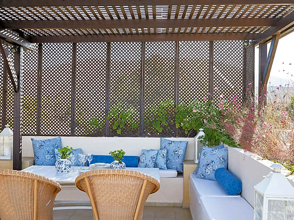 Spacious, elegantly appointed rooms located in the main building with balcony offering side sea and garden views. Each room is decorated with blue and white fabrics on bamboo furniture.